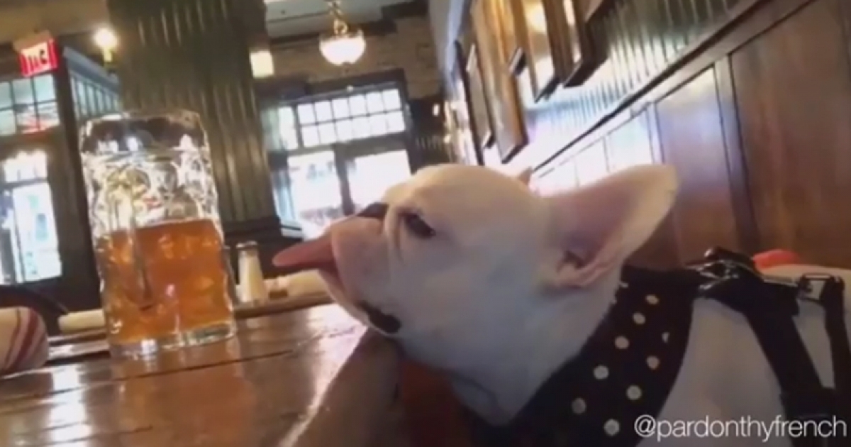 「我也想喝酒!」 法鬥努力伸舌頭的模樣超呆萌