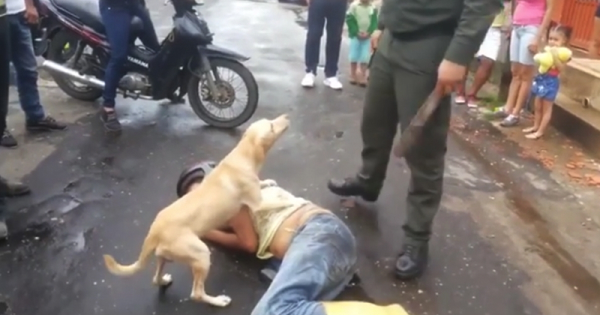 狗狗全力守護醉倒路邊的主人 警察靠近也不放行:不准碰我把拔