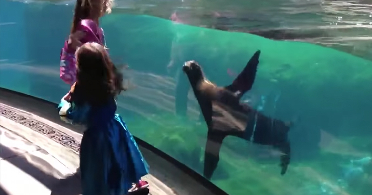 海獅剛認識的小女孩不小心跌倒 牠秒停住的反應就像在關心她