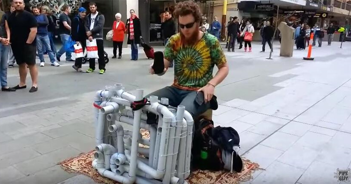 神人巧思「水管+夾腳拖」怪異組合 吸引大批路人駐足旁觀