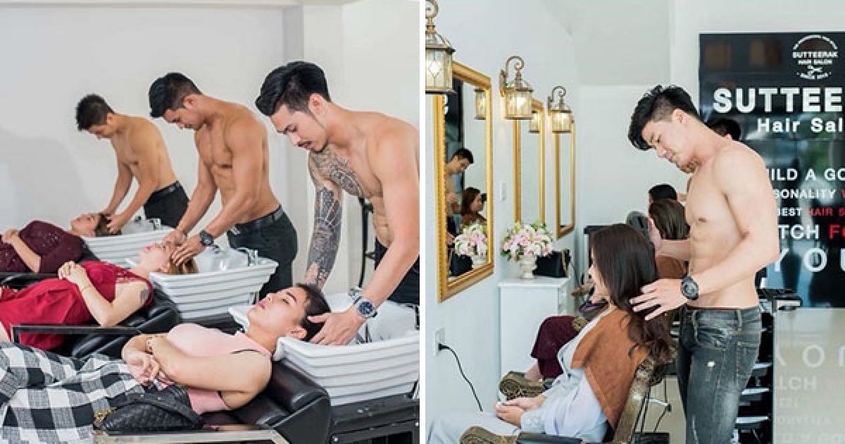 泰國髮廊開張找來「大肌肌模特」 「全程上空服務」讓女客人笑得樂不可支