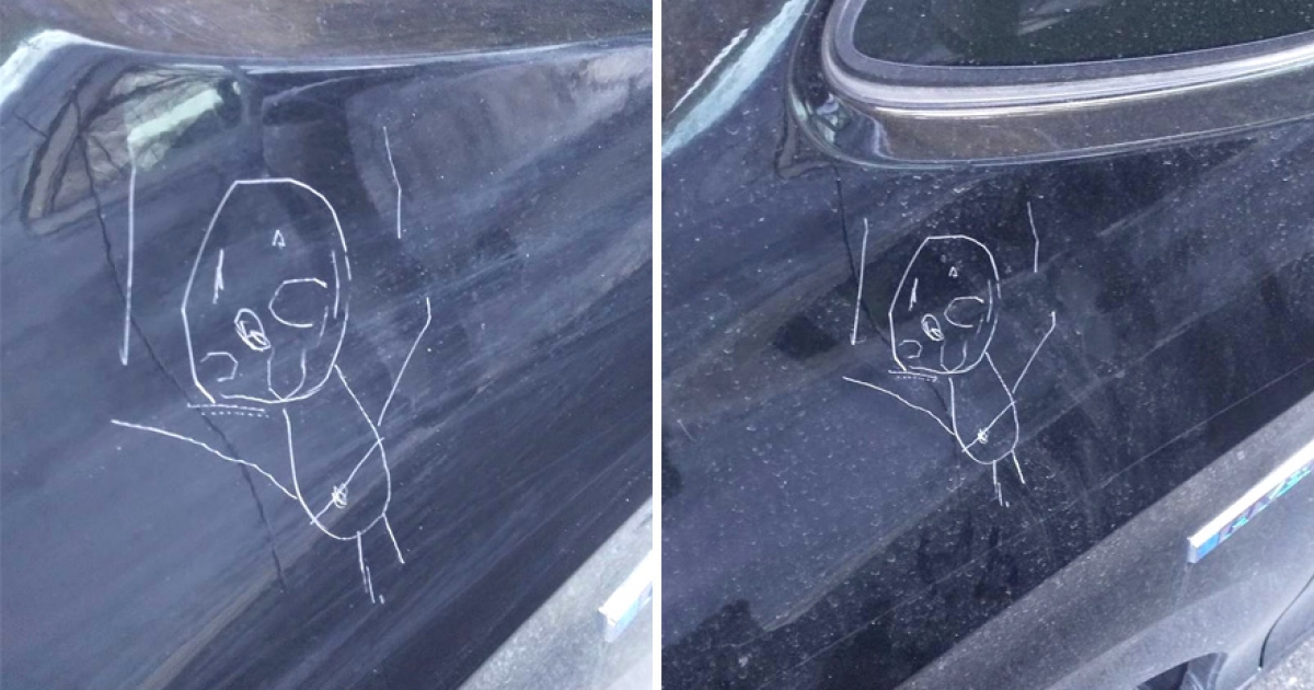 養小孩好難!4歲女兒汽車上塗鴉「麵包超人」 爸爸含淚收下禮物:畫得很好