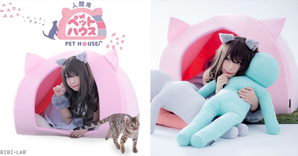 想變貓咪? 日本公司推出「人類專用貓窩」 正妹鑽進去秒變小野貓