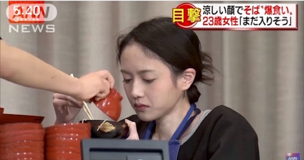謎之美女參加大胃王「15分鐘嗑光293碗麵」 一站起來網友嚇壞:食物都去哪了?