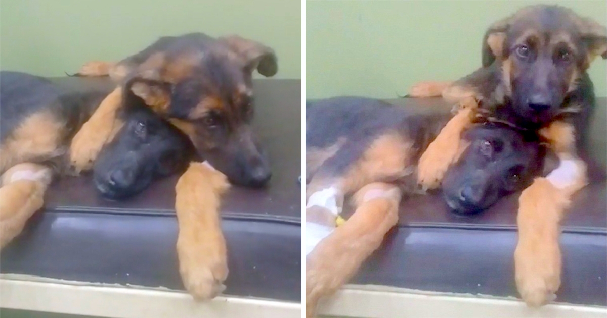 兄妹情深!狗哥哥緊抱虛弱妹 「含水的眼神」看醫生:牠會好起來對不對?