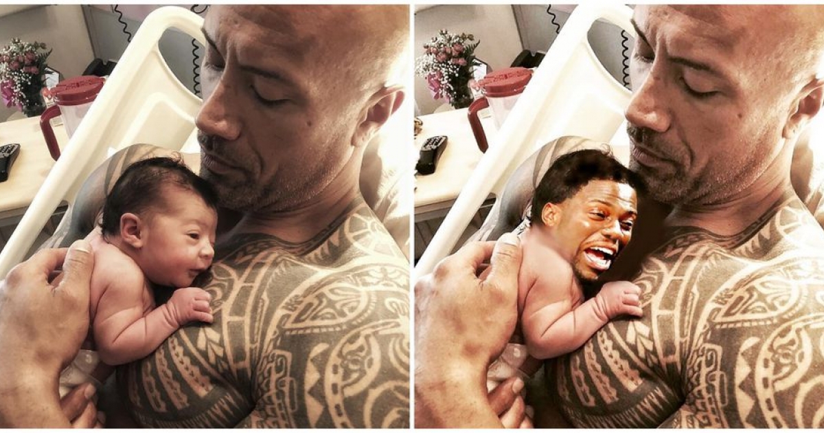 笑爛! 巨石強森把女兒的臉PS成凱文哈特 最後一句害麻吉臉歪掉