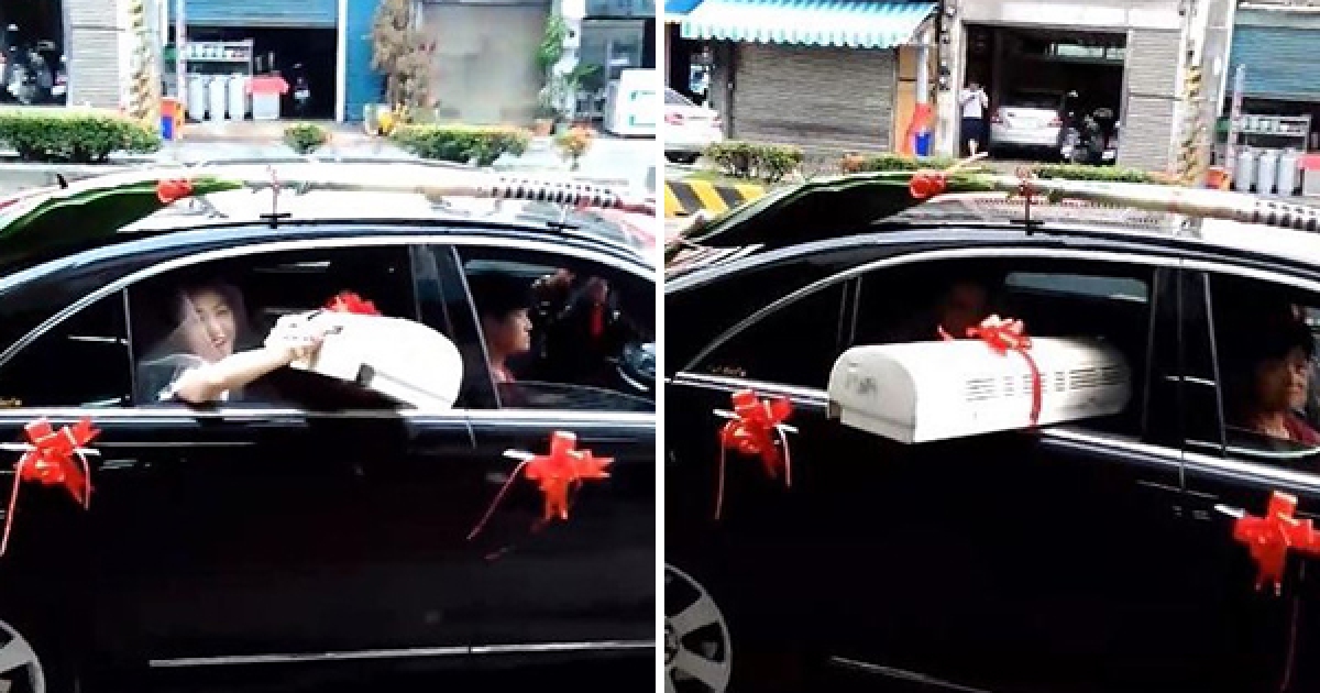 新娘「脾氣差」搭禮車拋出一台冷氣機 網友驚:新郎請保重