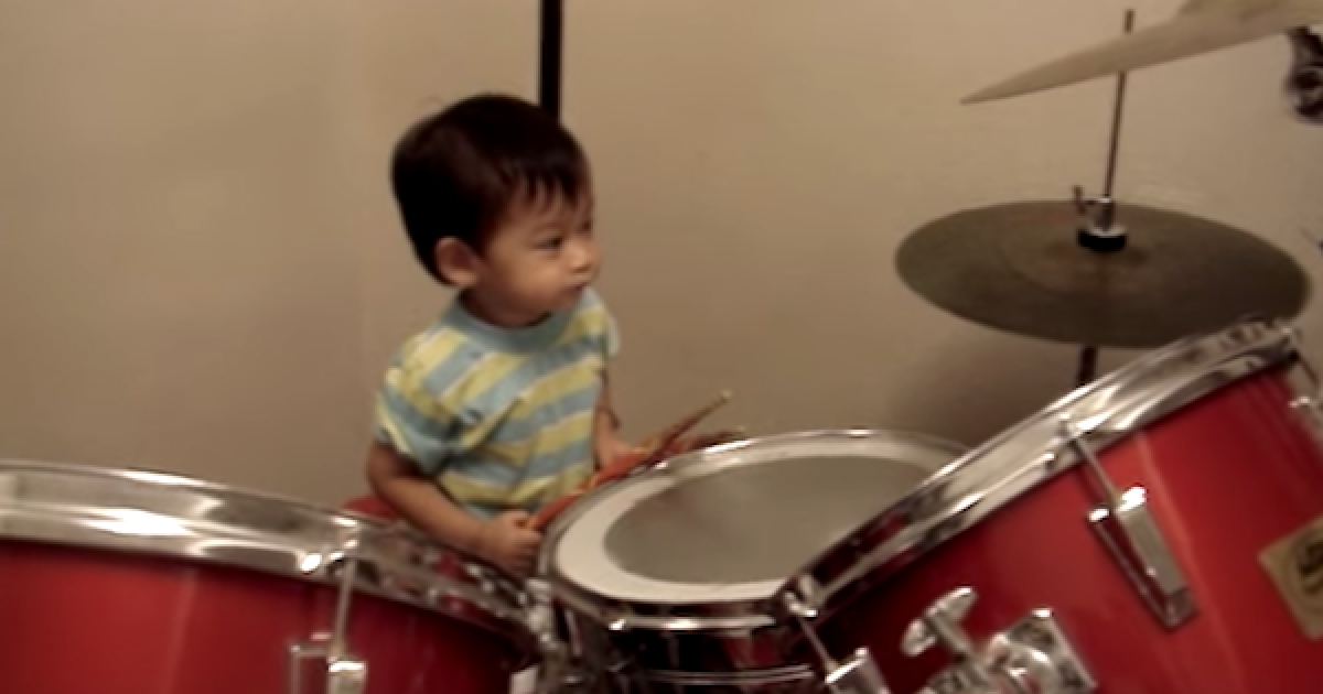 3歲小男孩呆萌坐在爵士鼓前 下秒「實力全開」 網驚:看見天才了