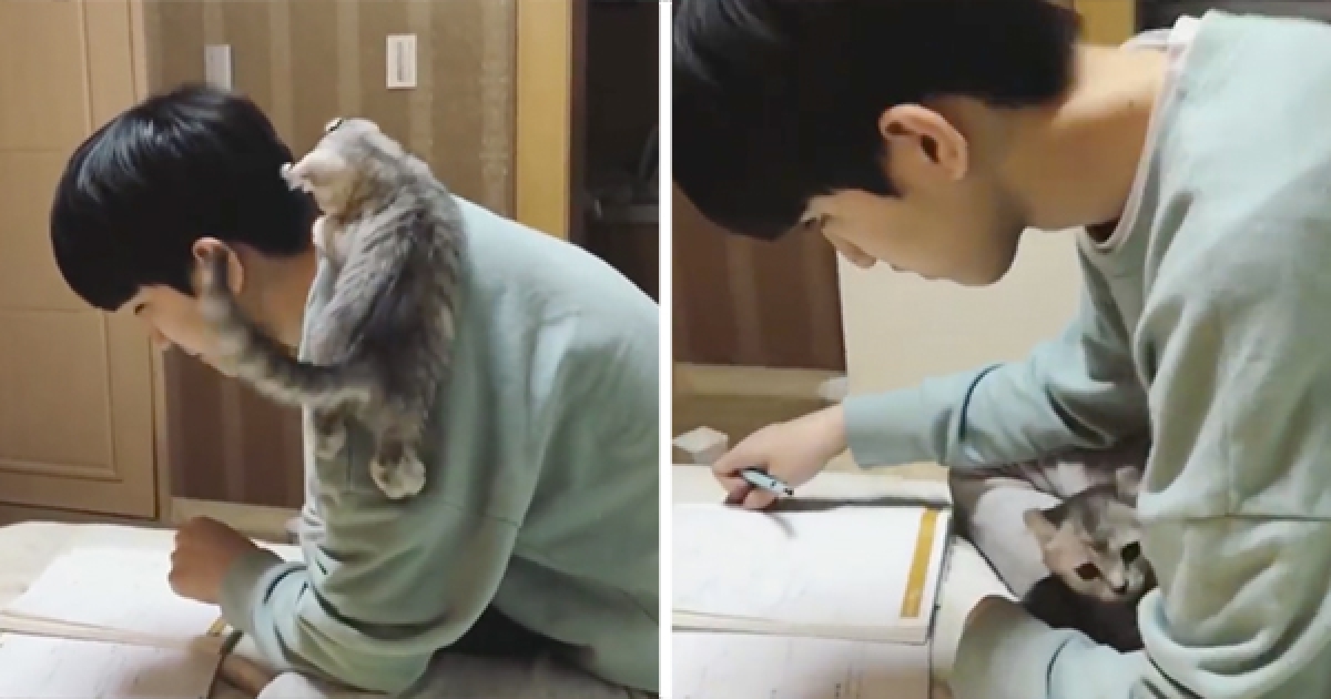 不要看書~看我啦! 萌貓咪挑戰小帥哥的定力 最後鑽進懷裡成功融化他