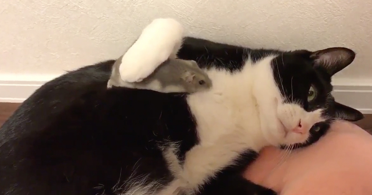 傻眼貓咪… 賓士貓一睜開眼驚見老鼠在身上 神反應讓網友噴笑:想著要不要吃?