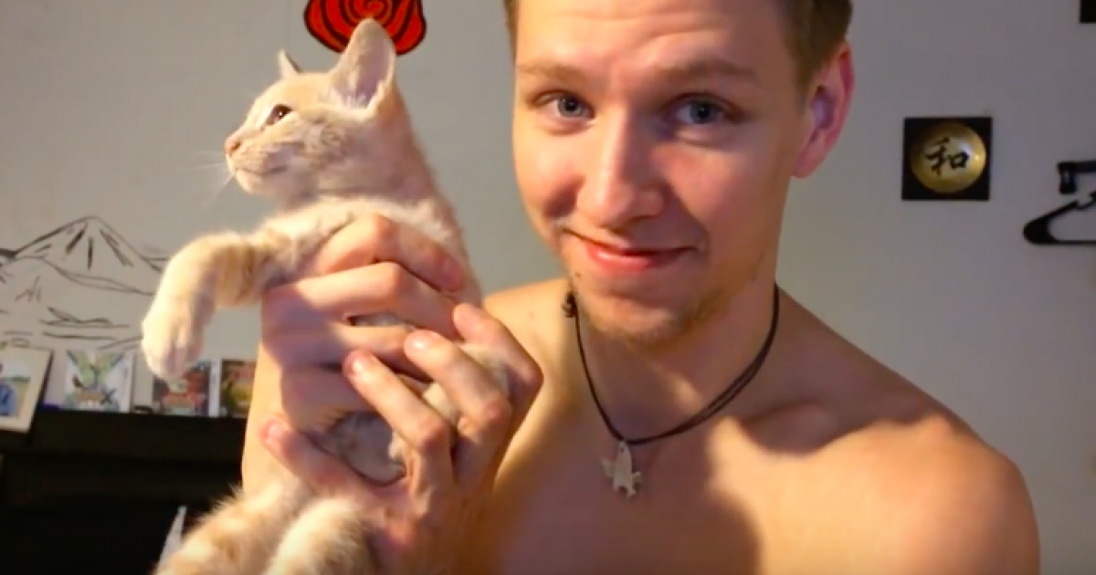 天菜把拔一放手就會抗議! 小橘貓超會撒嬌 只要被抱緊處理就會靜下來