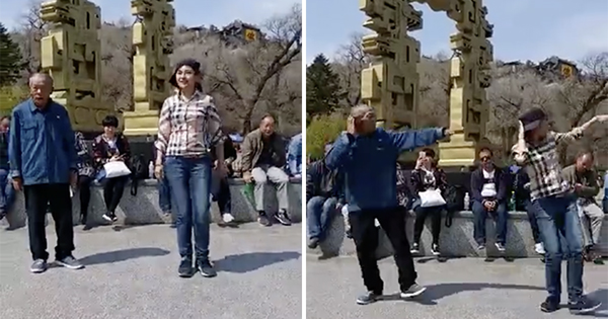 正妹在廣場跳舞大家超期待 音樂一起網友驚覺:旁邊阿伯才是主角!