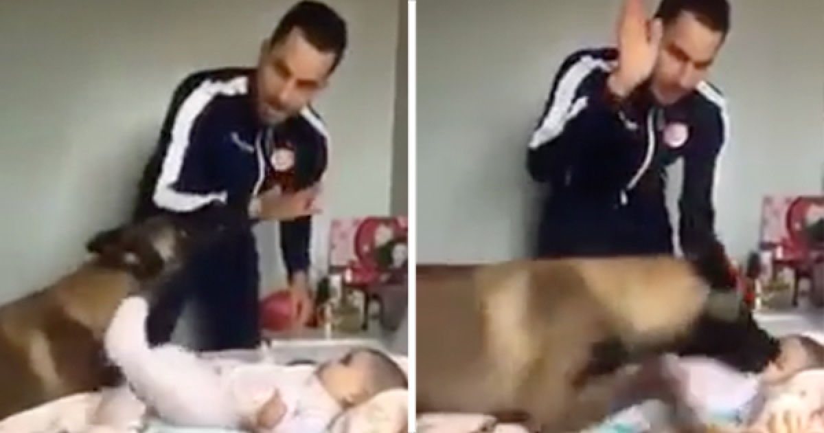 家人也不可以打! 爸爸假裝打寶寶 毛哥哥一個動作讓他不敢動