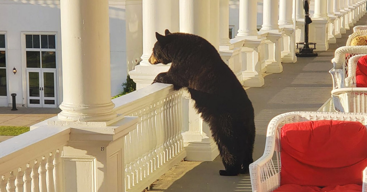 黑熊闖進飯店「悠閒看日出」 倚著欄杆的身影讓網友笑:很會享受的熊