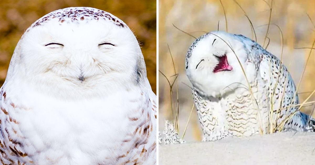 也太萌! 攝影師拍到「貓頭鷹咧嘴大笑」 瞇起眼睛秒變彌勒佛:你的威嚴呢?
