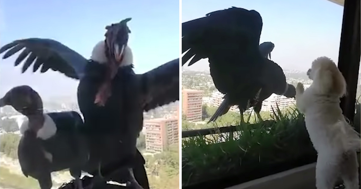 人類待在家「巨型神鷹」囂張隔窗挑釁 汪星人「怕怕」緊盯不放:你想槓麻啦QQ