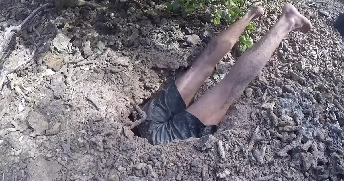 他在幹嘛?! 半個身體鑽進泥地裡 一出回來「超巨大身影」讓現場驚叫