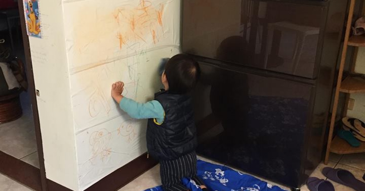 地方的媽媽好聰明! 她在好市多買保鮮膜貼牆上 2歲兒亂畫也沒關係