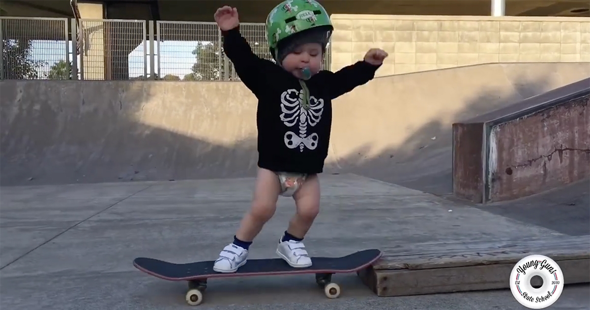 還在吸奶嘴… 1歲大小神童「站上滑板」 苦練1年多變超強