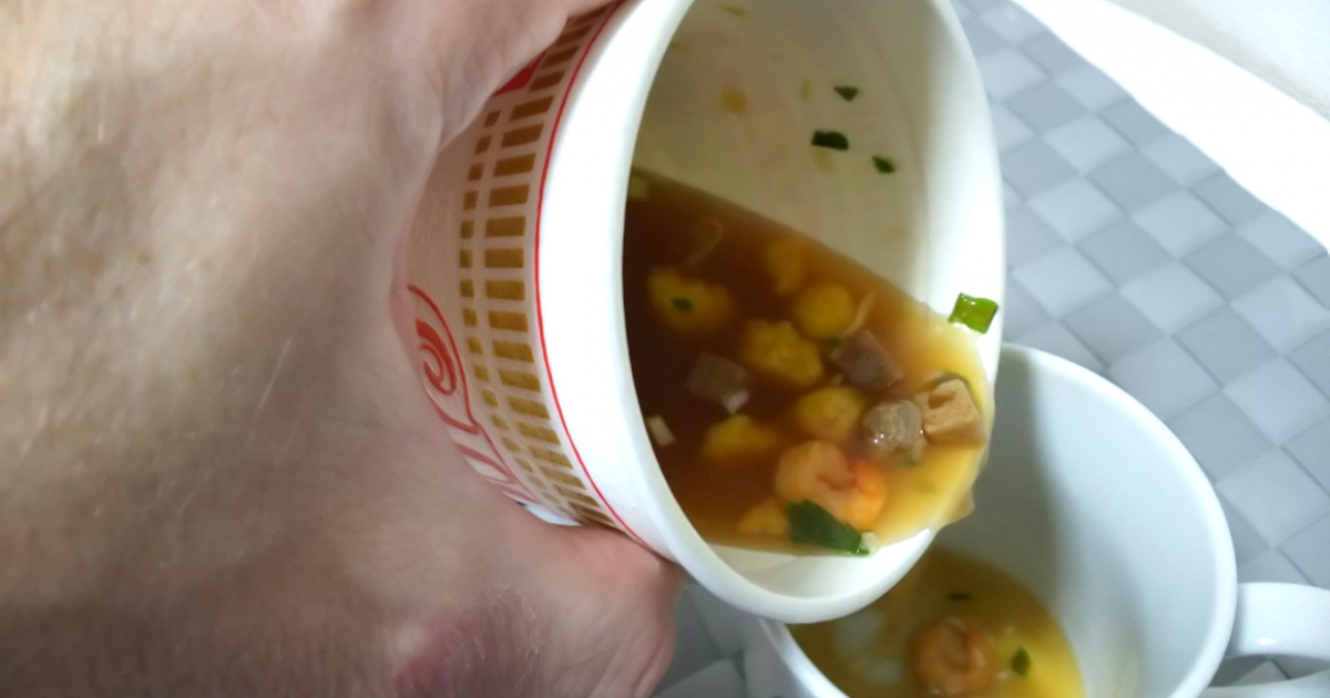 將杯麵剩下的湯汁倒入馬克杯 打一顆蛋微波兩分鐘 以後吃完泡麵都會這樣做