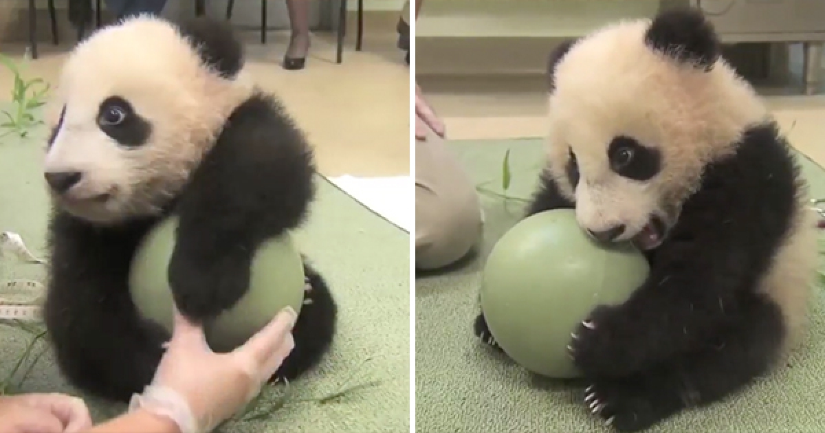 我不要給給! 小熊貓「抱緊寶貝球球」 保育人員靠近就怒瞪:我打打哦