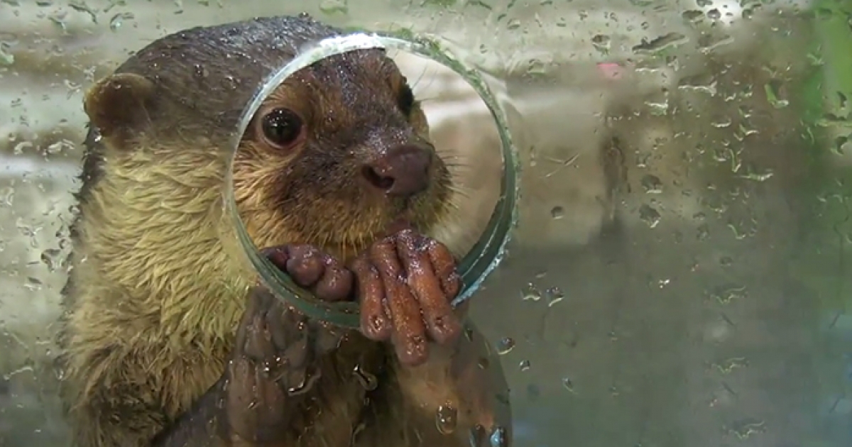 「石頭掉了幫我撿一下~」 小水獺天天往外丟石頭 飼育員解答:牠想一起玩