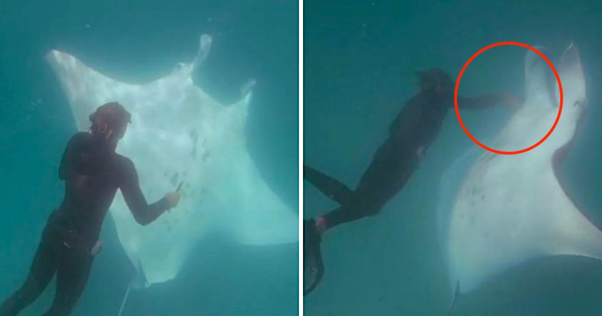 3米鬼蝠魟「靠近後不走」 潛水員愣…近看大驚:牠是在求救!