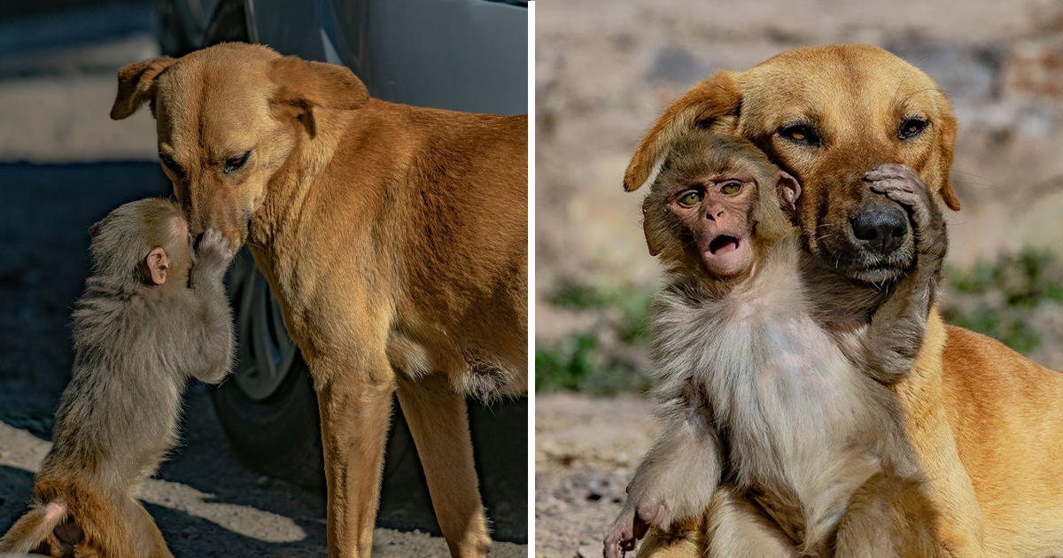 媽,親一個~ 狗媽收養孤兒猴寶 超溫馨互動融化人心:最無私母愛!