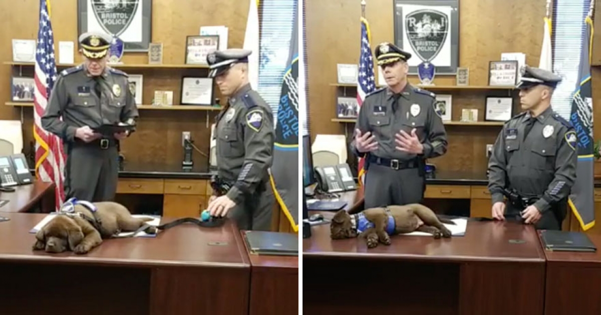 超Q小警犬「就職典禮」甜睡整場 警察演講「牠還換睡姿」:人家真的很早起嘛~