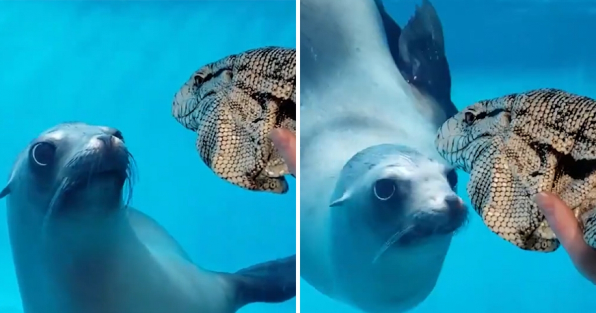 這是什麼怪物?! 萌海獅「第一次見蜥蜴」嚇到表情定格 目瞪口呆「回頭好幾次」:我沒有眼花吧?