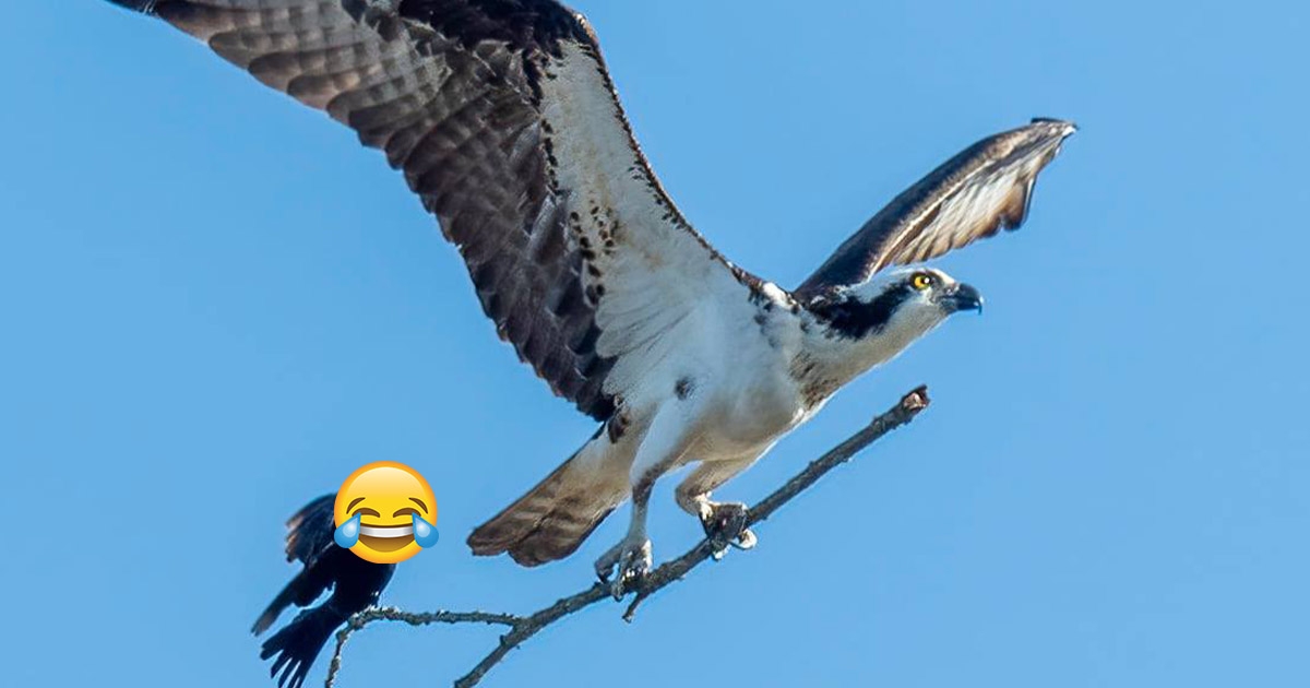 大鳥抓樹枝奮力起飛! 眾人看到後方笑了:有人淡定搭便車