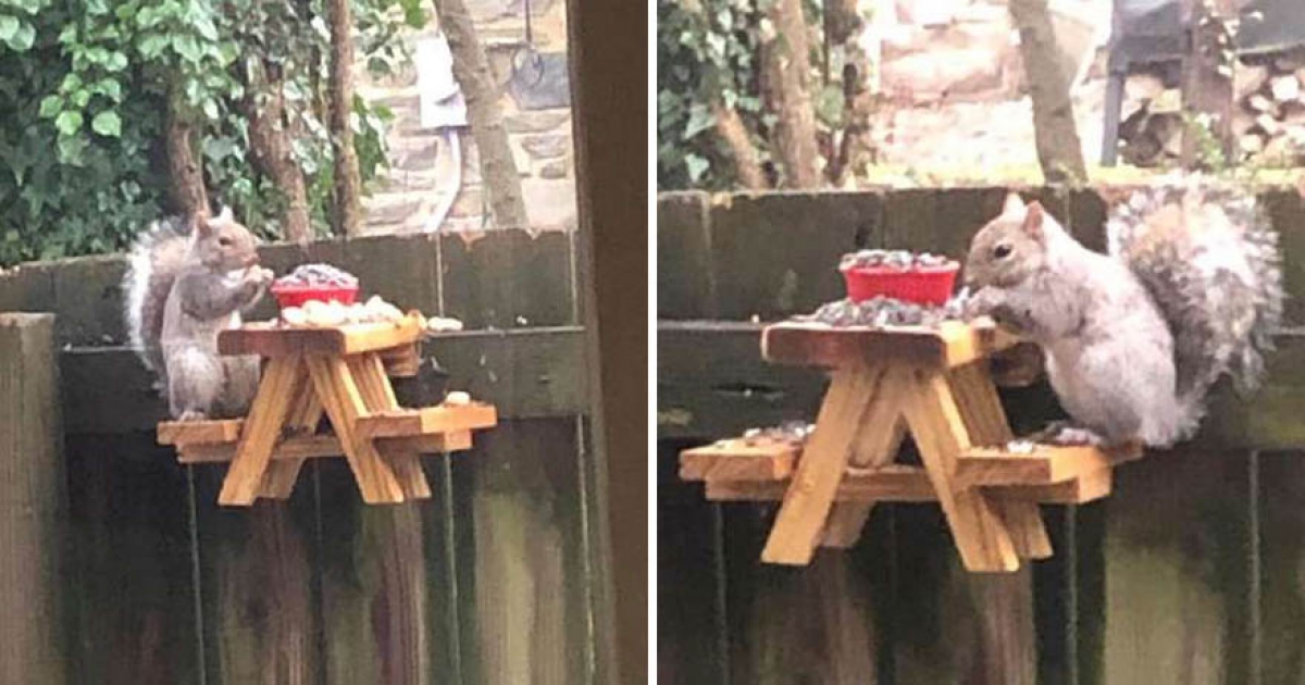 他在後院放上迷你小餐桌招待 「呆萌小客人」來用餐網友都被萌化了