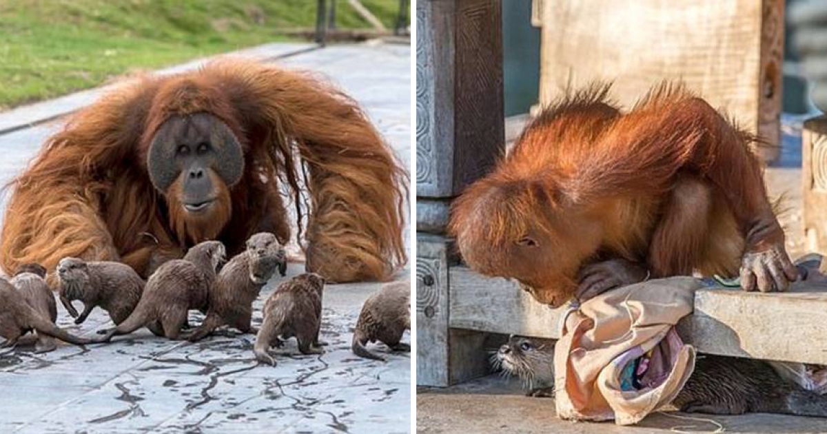 跨物種也能交朋友! 動物園「紅毛猩猩和水獺」一起生活 「最萌體型差」互動超療癒:看一整天都不會膩