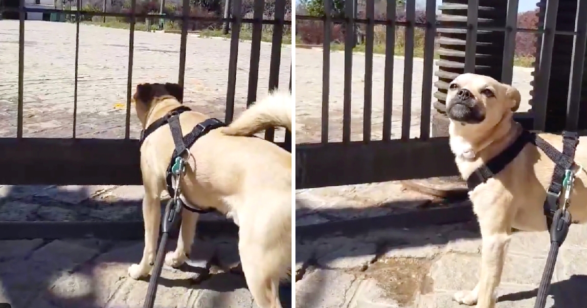 來散步才發現公園沒開! 阿汪急向主人「跺腳腳」嚶嚶嚶:為什麼不讓我進去QQ