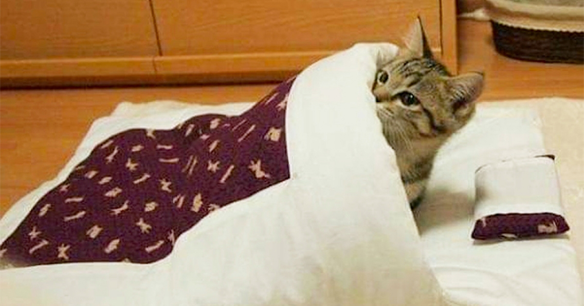 小虎斑每天的睡覺步驟「很人類」 被被蓋好好:可以幫我關燈嗎~謝謝♡