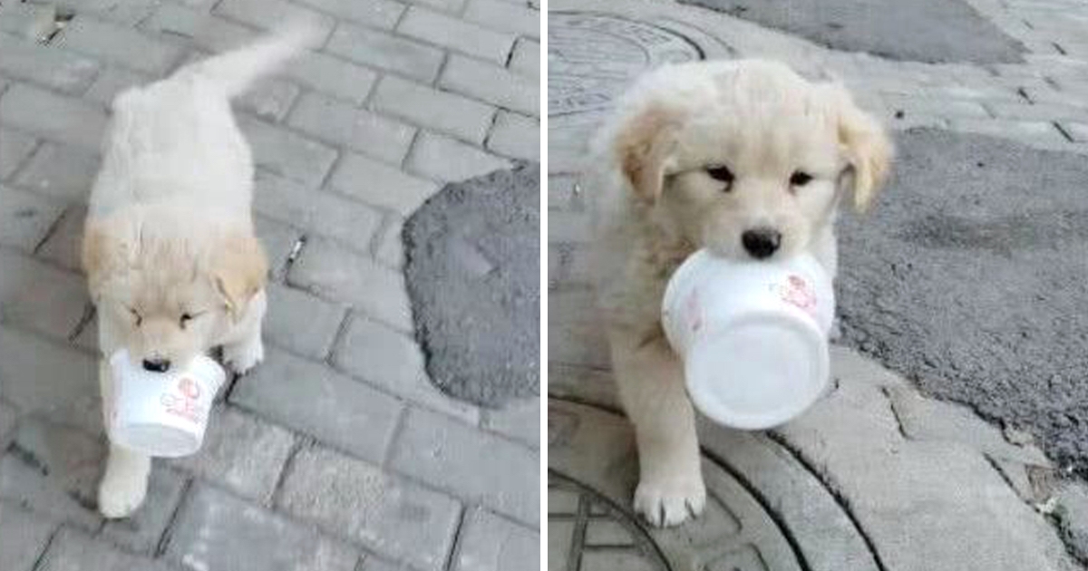 沒人照顧牠…小浪汪「叼撿來的碗」 自己四處討食超乖巧