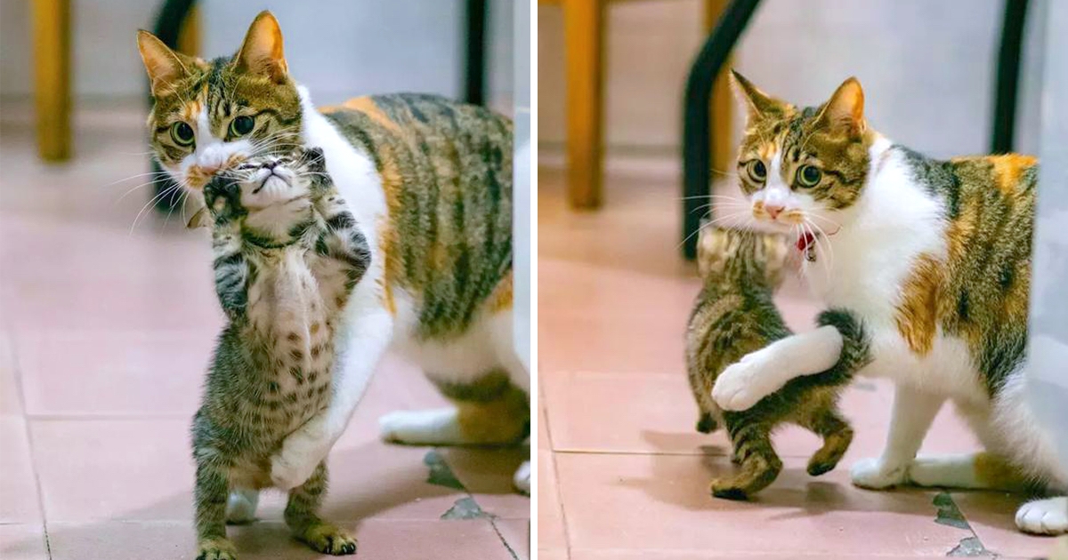 去朋友家作客…好奇小奶喵「衝上來想玩」 貓媽急攔住:小心怪叔叔