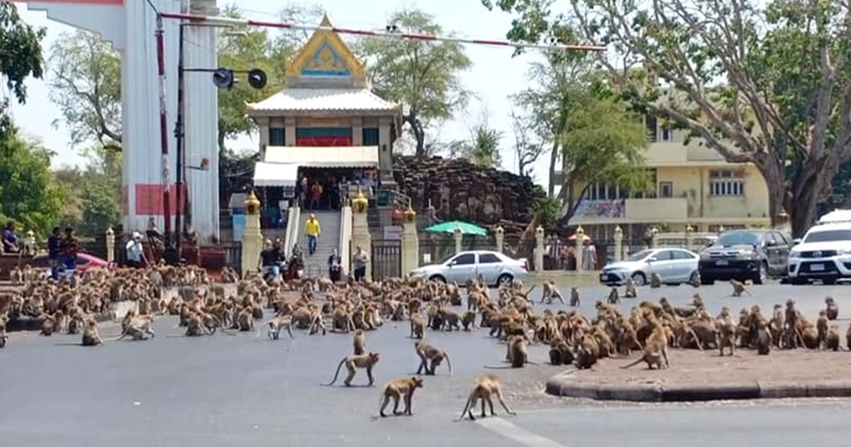 泰國遊客銳減沒東西吃 上百隻猴子竟「上街起義」狂奔到處搶食