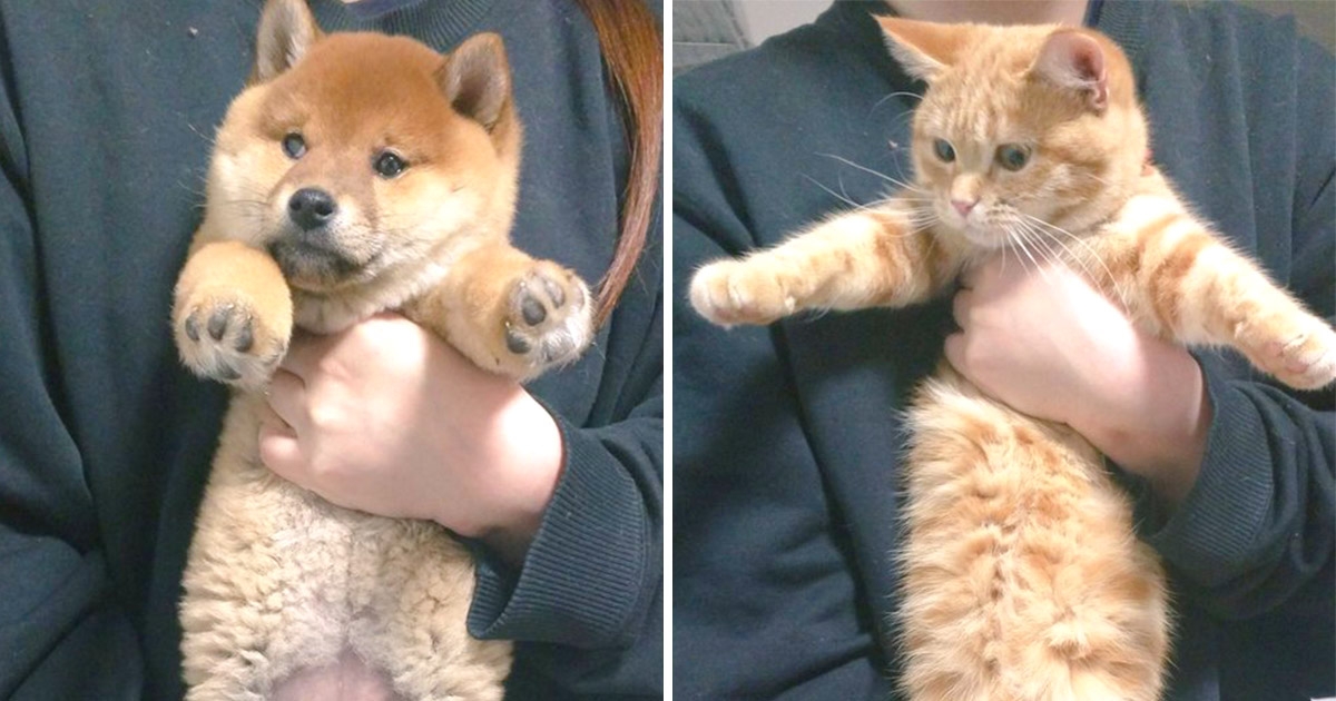 主人伸展「阿柴+貓貓」看能拉多長 無限延伸網笑翻:以後貓要用條啦~