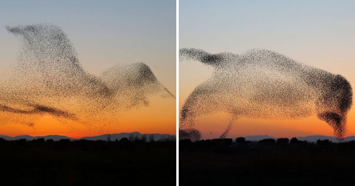 百萬張才出一張的奇蹟! 攝影師拍「萬鳥齊飛」返家才發現有特別隊形