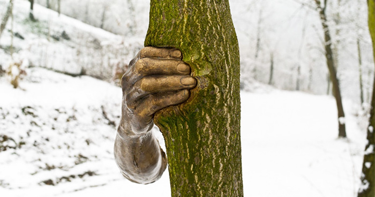 森林中出現「握著樹的手」 1968年的雕塑作品「過50年現在才完成」