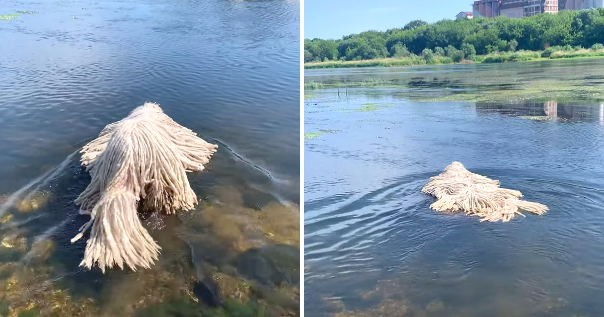 湖中怎麼有拖把在漂? 超萌「抹布犬」在水中太像洗拖把啦~