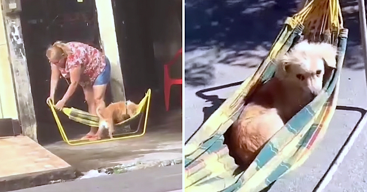主人幫搭吊床+在旁服侍 路人見汪汪「一臉爽樣」笑翻:這狗是皇上?