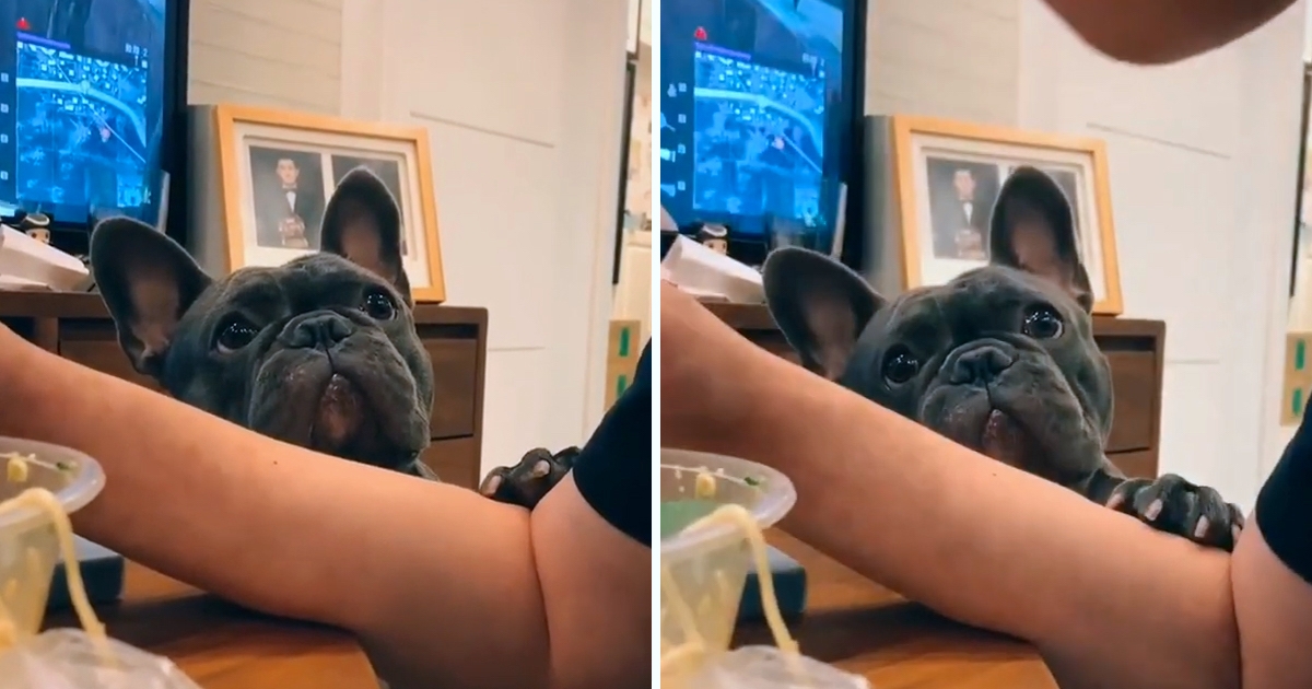 法鬥為吃「撒嬌力全開」 主人一動筷就按手手:你怎麼捨得我挨餓?