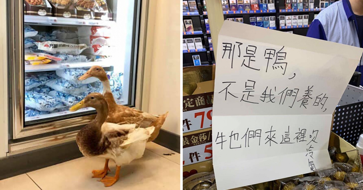2隻鴨鴨並肩來逛超商! 店員被問到「無奈貼公告」:來吹冷氣的