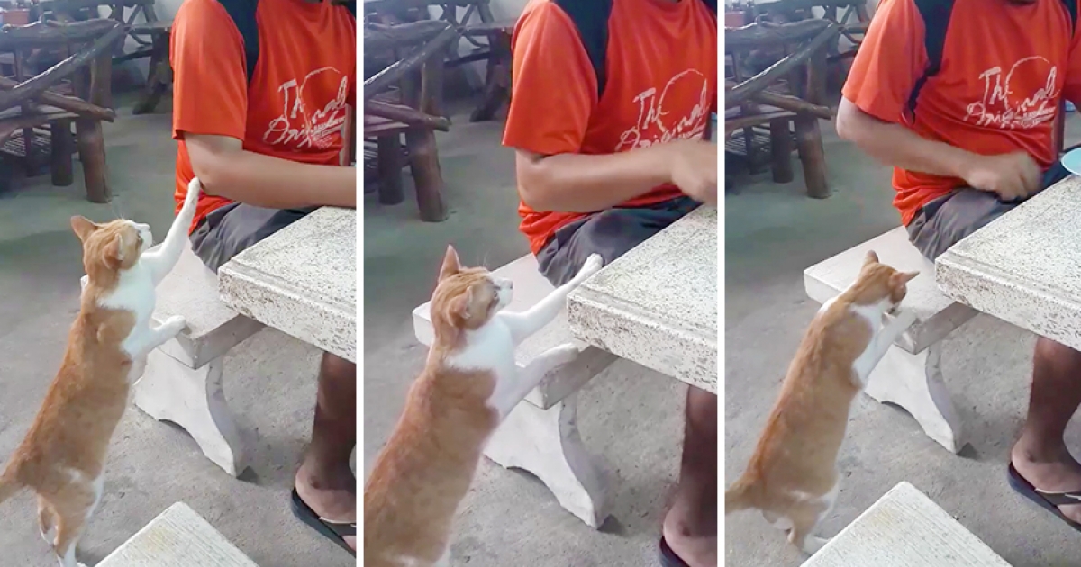 專業討食物的喵「很懂人心」 爪子輕拍「賣萌求餵食」果然拿到食物