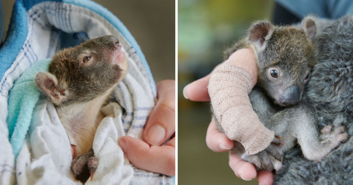 無尾熊寶寶從樹上摔下來「手臂打石膏」 露出憂鬱臉讓大家好想惜惜