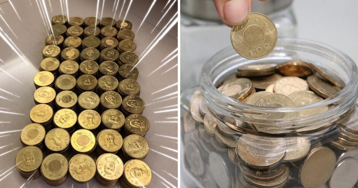 半年存「500個50塊硬幣」發大財 他秀「金磚陣」讓網友笑:超有成就感