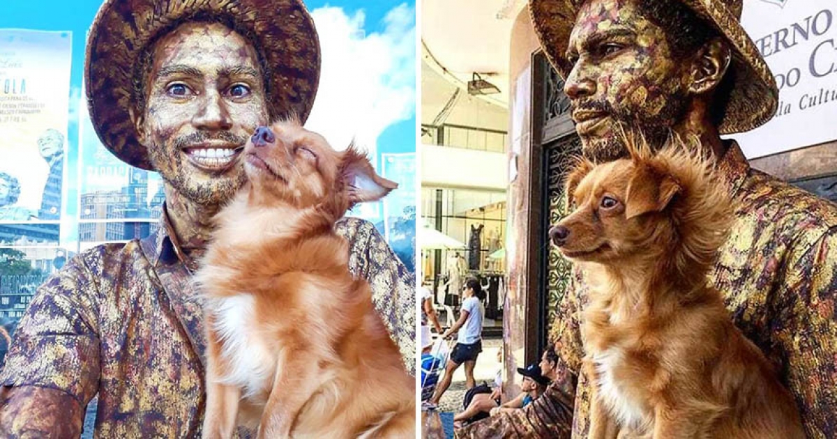 狗比人紅!毛孩模仿主人「扮演雕像」超精準 路人紛紛停下來投錢