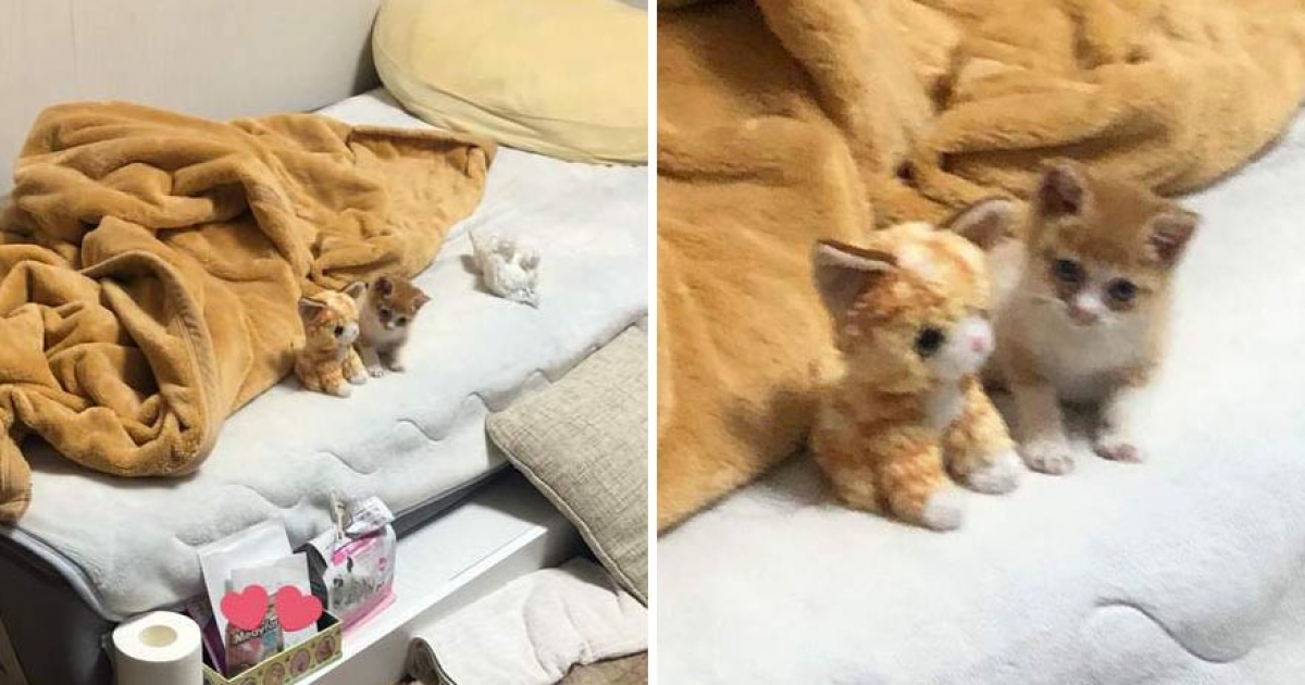 小奶喵剛到新家很怕 「正座看家」不肯離開娃娃…主人進門好心疼